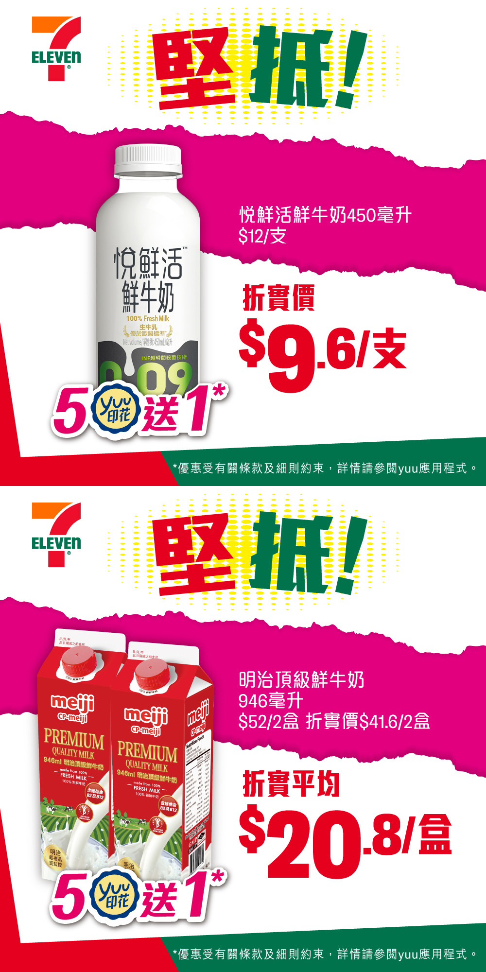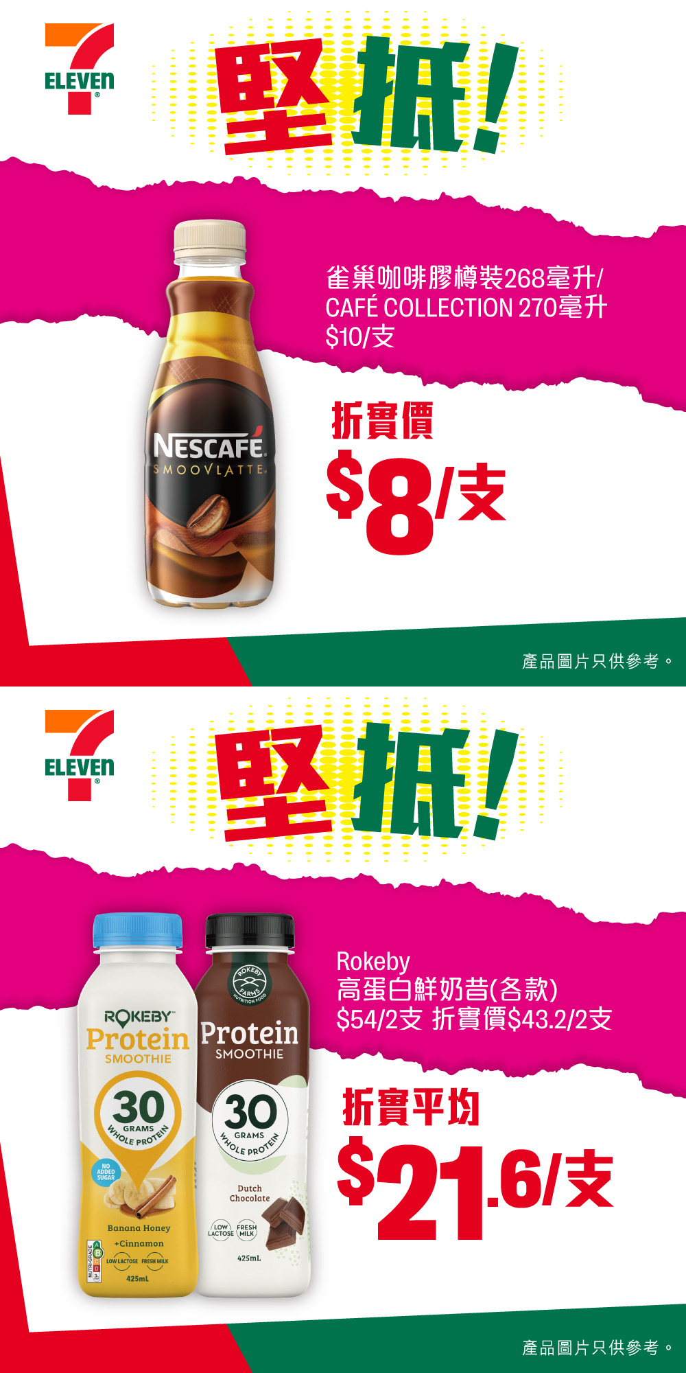 **以單一交易計算。圖片只供參考。貨品數量有限,售完即止。優惠受條款及細則約束,詳情請參閱 7-Eleven應用程式。