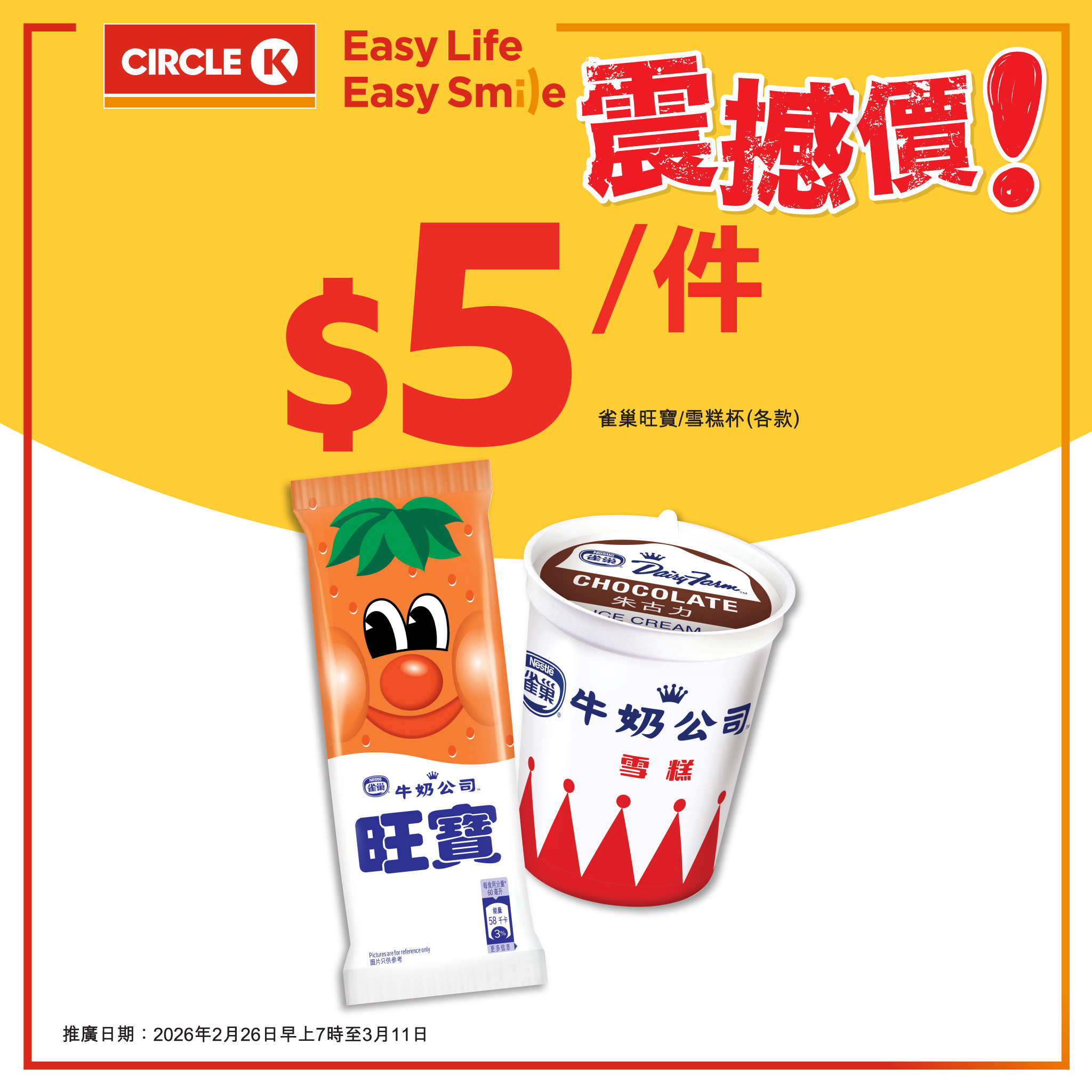 【只限兩星期震撼價優惠!】雀巢雪糕杯/旺寶只需$5/件.細細個放學後最期待嘅,就係捧住一杯雀巢雪糕杯或者食住旺寶雪條,冰涼香甜嘅滋味瞬間治癒一日嘅疲憊。無論係經典朱古力、雲尼拿定係其他口味,啖啖都係童年嘅味道~.由即日起至3月11日,Circle K限時推出【雀巢雪糕震撼價】!各款雀巢雪糕杯/旺寶雪條只需$5/件,抵到爆!.快啲嚟OK便利店入貨,一齊嚟回味童年滋味啦!.- 數量有限,售完即止。- 此優惠不可與其他優惠同時使.#OK便利店 #CircleK #雀巢雪糕杯 #旺寶 #震撼價 #童年回憶 #限時優惠 #Jetso