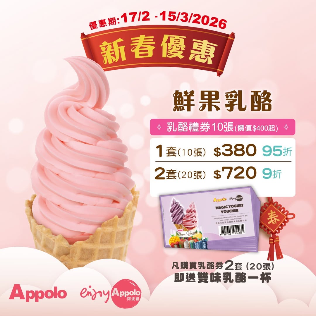 *農曆新年期間,阿波羅Appolo及enjoy Appolo 雪糕分店之營業時間將有所調動,敬請留意。
