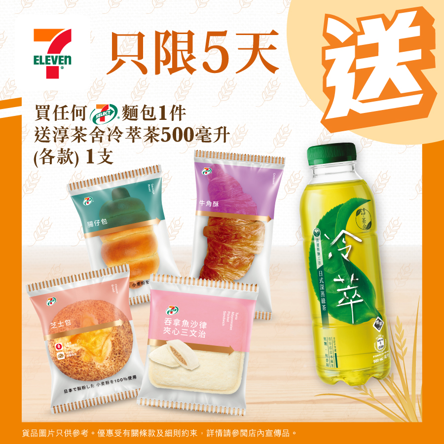 買任何7-SELECT麵包1件 送淳茶舍冷萃茶500毫升