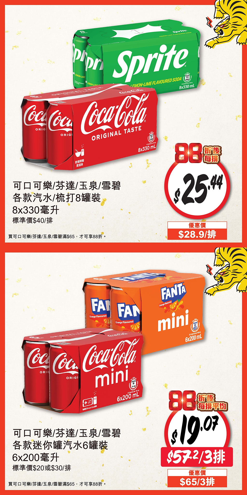 】惠康優惠繼續猛登場!今期買可口可樂/芬達/玉泉/雪碧汽水滿$65,即享88折!多款可口可樂