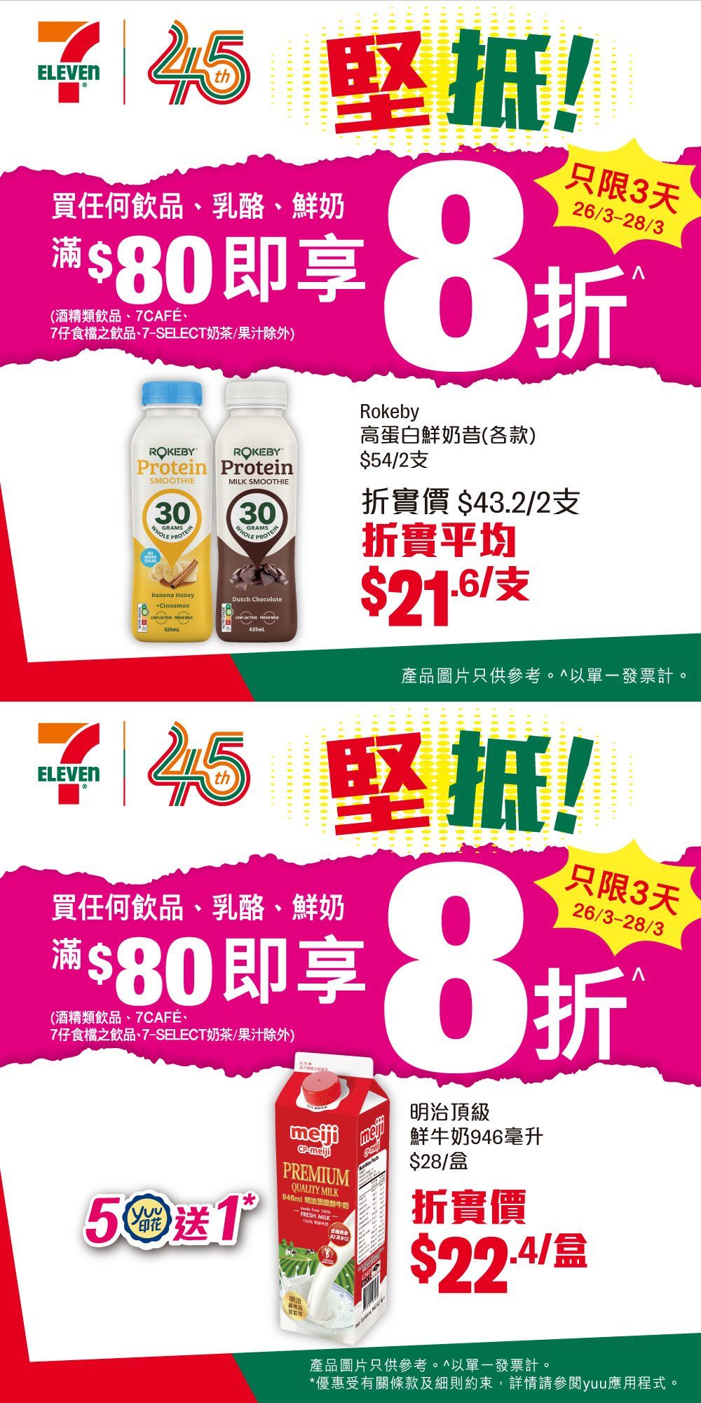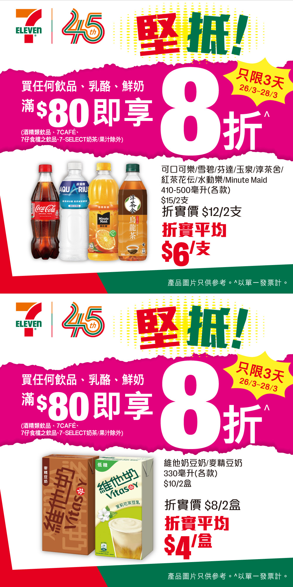 *優惠有效期由2026年3月26日早上7時至3月28日。以單一交易計算。部分貨品只限於指定店舖提供。貨品數量有限,售 / 送 / 換完即止。價格於香港店舖以港幣為單位,而於澳門店舖則以澳門幣為單位。 如有爭議,所有價格以個別店舖為準。貨品圖片只供參考。就一切有關事宜,7-Eleven 將保留最終之決定權。