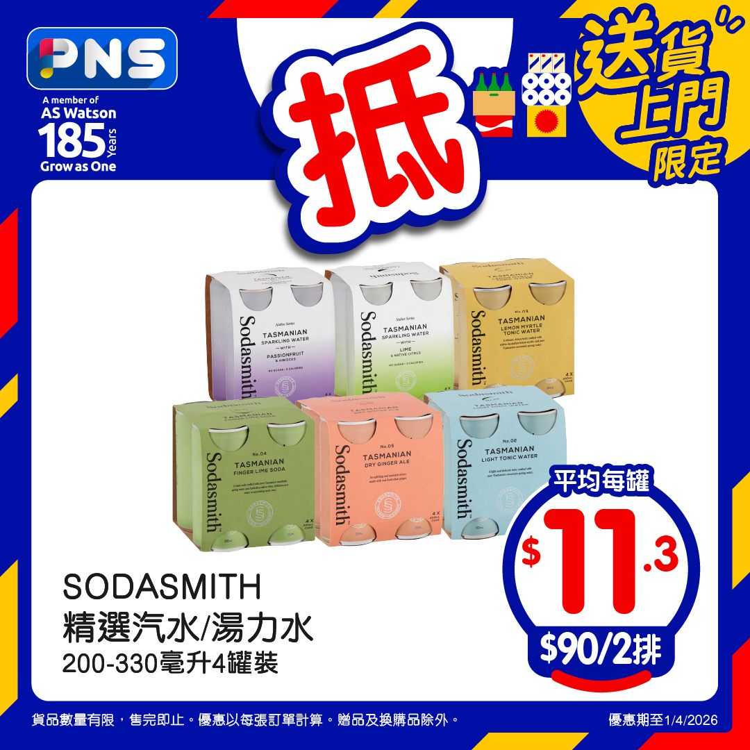 精選SODASMITH汽水/湯力水200-330毫升4罐裝,優惠價$90/2排,平均$11.3/罐