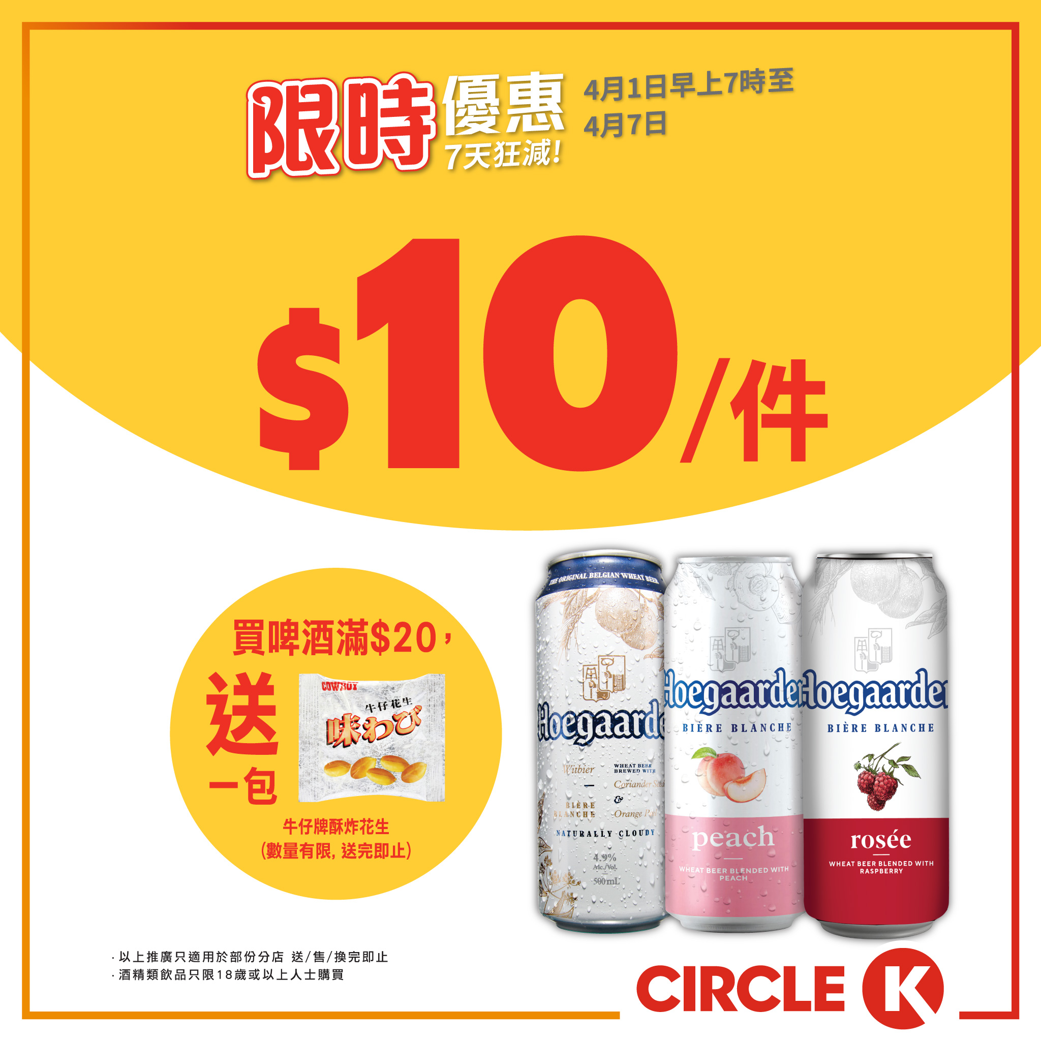 額外著數:買啤酒產品滿$20(以單一消費計算),即送牛仔牌花生1包!.