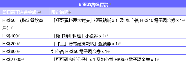 「5重消費爆買賞」及「最高消費賞」賞逾HK$40,000電子現金券及獎品