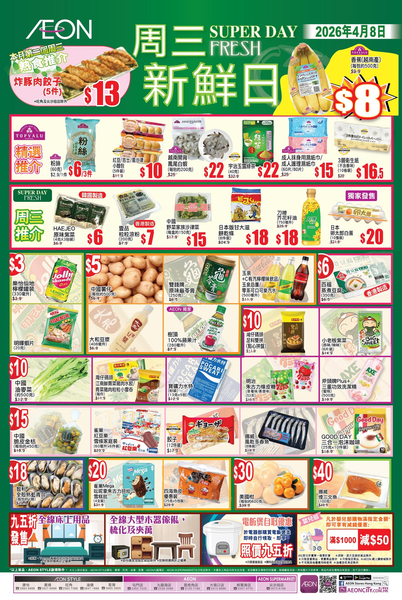 指定特許銷售商仲有周三新鮮日優惠,只係特定分店有架咋,快d黎AEON睇睇啦!