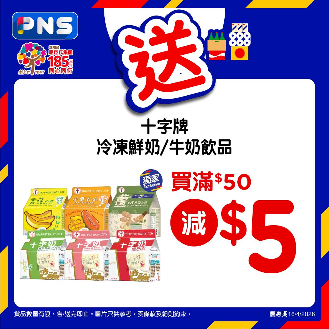 即減$5優惠期至2026年4月16日。優惠適用於有售賣此貨品之香港百佳店舖及PNS網購。其他產品只適用於PNS網購。需登入PNS網購以查看贈品優惠。贈品數量有限,送完即止。優惠以每張訂單計算。圖片只供參考。受條款及細則約束。
