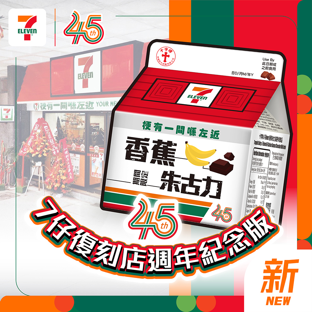 今期 7 仔推出45 周年限定嘅 #十字牌香蕉朱古力高鈣牛奶飲品