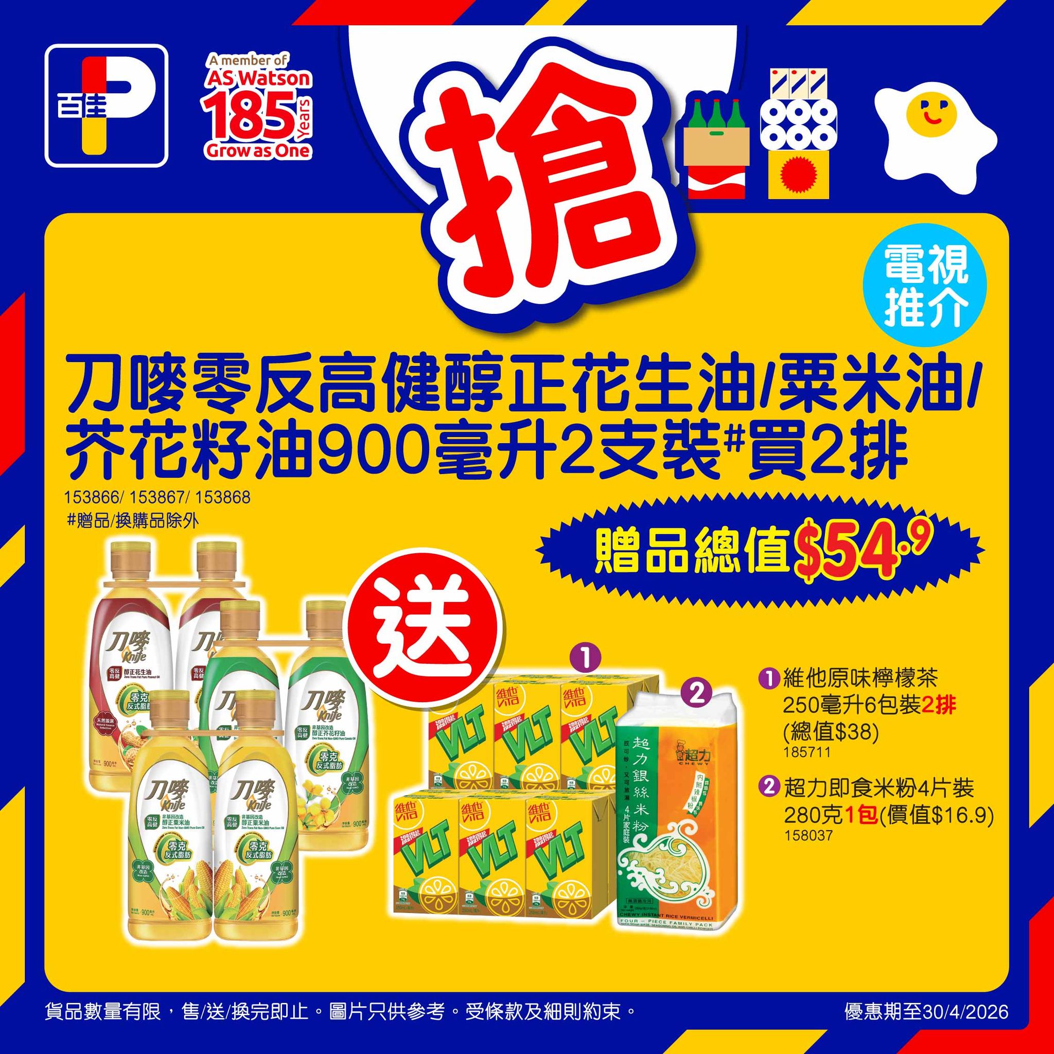 *優惠至30/4/2026。以上優惠適用於大部分香港百佳、FUSION、TASTE、INTERNATIONAL 有售,並不適用於百佳旗下的其他超市品牌、百佳快閃特賣埸及新鮮食品優惠並不適用於 TASTE x FRESH 新鮮生活之店舖。貨品數量有限,售/送/換完即止。圖片只供參考。受條款及細則約束。以每張發票計算。 # 原箱優惠除外