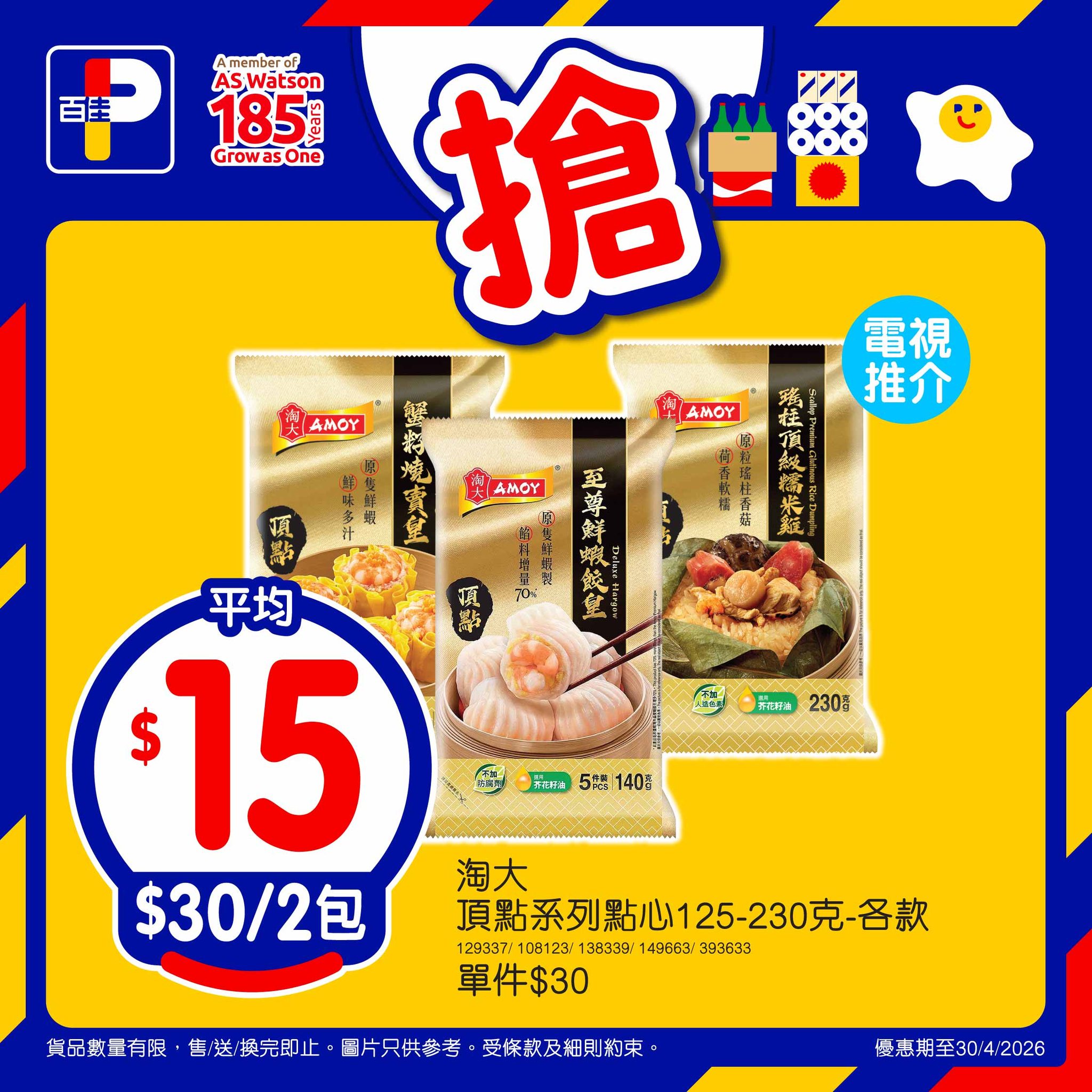 淘大頂點系列點心125-230克 – 各款,$30/2包,平均$15/包*