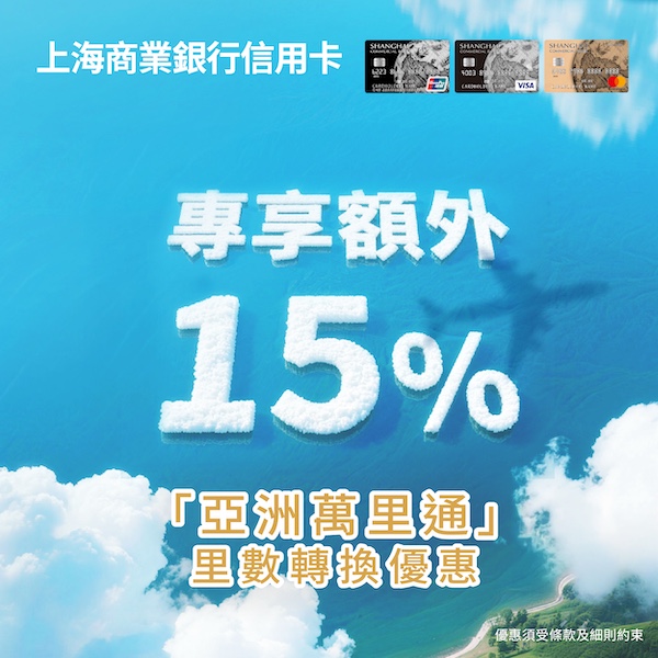 【上商信用卡 - 額外15%「亞洲萬里通」里數轉換優惠