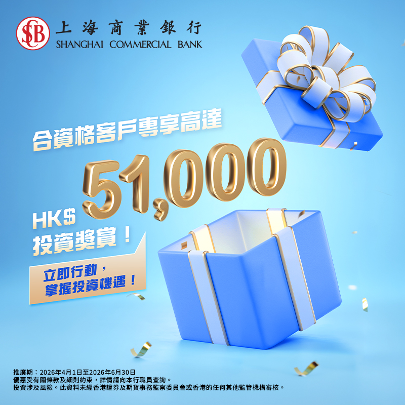 #上商 推出投資產品優惠!即日起至2026年6月30日,合資格客戶認購指定投資產品,可享高達HKD$51,000優惠!