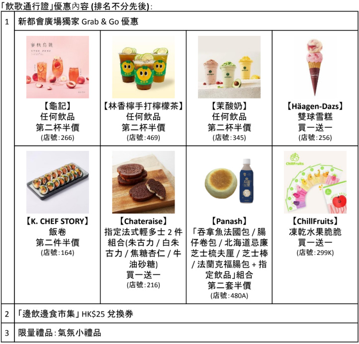 新都會廣場特別推出「飲歌通行證」,聯乘場內多個人氣 Grab & Go 品牌,包括人氣手搖「林香檸手打檸檬茶」、「龜記」、「茉酸奶」,以及甜品界龍頭 Häagen-Dazs 等,推出獨家「買一送一」或「第二件半價」優惠!