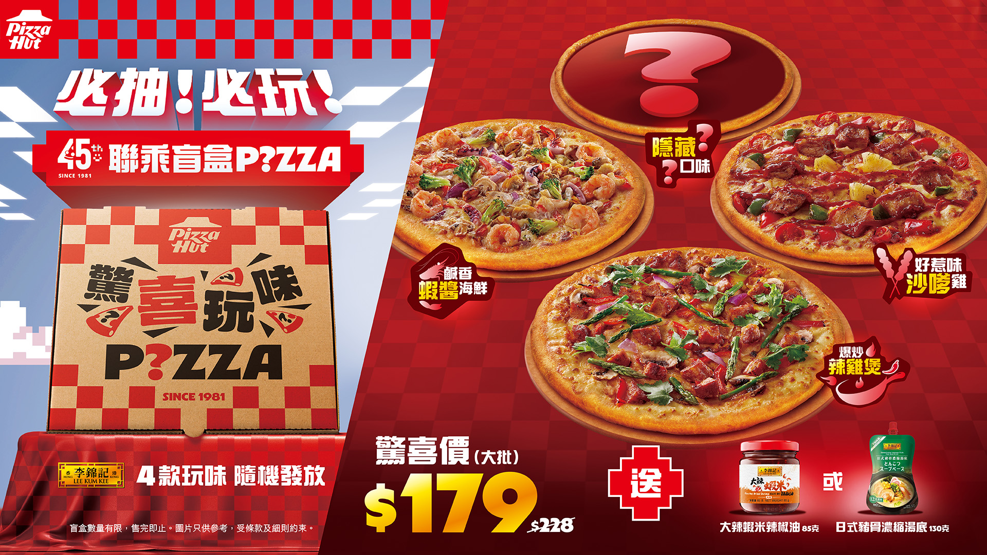 備受網民熱議的「神秘 Pizza」謎底正式揭曉!為慶祝品牌進駐香港 45 周年,Pizza Hut 破天荒聯乘本地百年醬料權威李錦記,攜手呈獻全港首創的期間限定「必勝盲盒」 。這場合作將「盲盒」熱潮帶入美食界,結合 Pizza Hut 的創意與李錦記的靈魂醬料,從 4 月 30 日起至 5 月 27 日,一連四星期於全港分店同步火熱登場 。