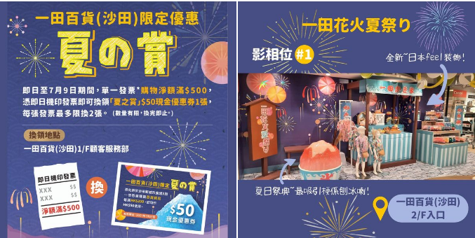 一田沙田店可以走到好有日本feel嘅夏祭場景之中打卡影靚相購物更有「夏の賞」限定優惠