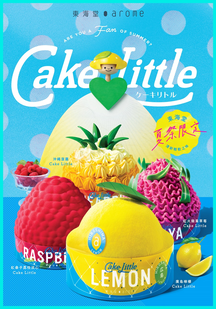 風和日麗,晴空萬里,蔚藍的天空與陽光閃耀大地,伴隨清新迷人的甜蜜果物氣息。在充滿活力的夏日,arome東海堂再度發揮天馬行空的無窮想像,嚴選四款時令果物—廣島檸檬、沖繩菠蘿、紅桑子和紅火龍果入饌,呈獻全新夏祭限定「Cake Little」蛋糕系列,包括「廣島檸檬Cake Little」、「沖繩菠蘿Cake Little」、「紅桑子荔枝流心Cake Little」和「紅火龍果草莓Cake Little」,以矚目可愛的3D果物造型加上特設裝飾,營造精緻立體效果,完美配襯完熟甜蜜果香,加上4個精心設計的可愛果物小精靈,為夏日注入一襲清新果「蜜」氣息,帶你投身繽紛盛夏!