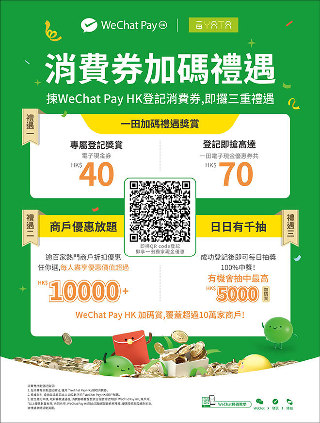 一田:一田X WeChat Pay HK消費券加碼賞・登記享高達$110奬賞
