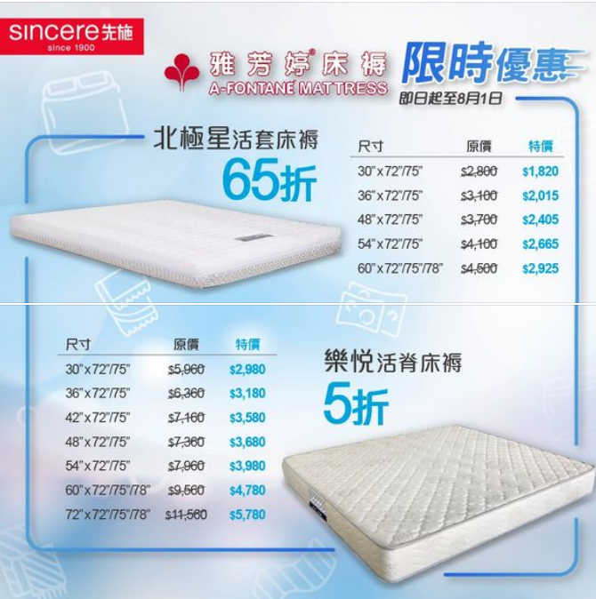 依家兩款床褥都有限時優惠