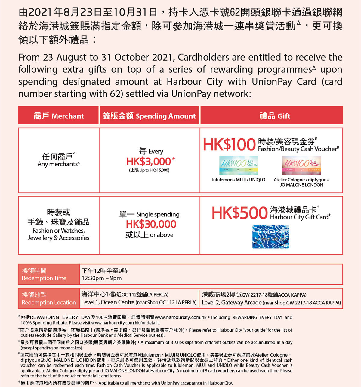 來源:http://www.harbourcity.com.hk/tc/happening/union-pay-spending-rewards-2021/