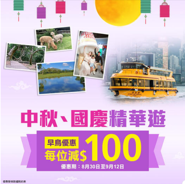 永安旅遊 本地遊早鳥優惠每位勁減$100 ,即日起至9月12日報名參加指定中秋節