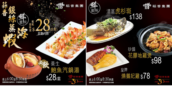 以上優惠適用於稻香、稻香超級漁港、稻香漁港市集、稻香茶居、稻坊分店 優惠詳情: https://rb.gy/y7mfkt