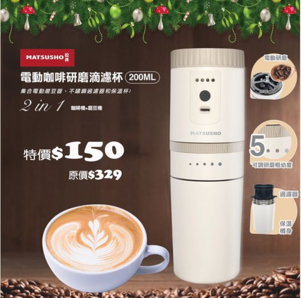 日本城松井無線電動咖啡研磨滴濾杯200M特價$150