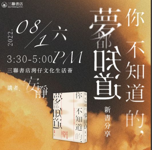 三聯書店【#活動預告】《你不知道的,夢都知道》新書分享, 活動詳情日期:2022年1月8日(六)時間:下午3時半至5時地點:三聯書店灣仔文化生活薈講者:安靜(專業心理輔導及治療師)報名:https://bit.ly/324Y1o0《你不知道的,夢都知道》現於各大門市有售網上購買:https://bit.ly/3m1