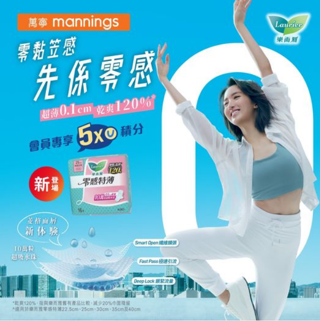 萬寧【「零」感新體驗➡️全新Laurier 樂而雅零感特薄】用全新嘅Laurier零感特薄啦!新升級設計幫你瞬吸流量,等您時刻Keep住乾爽、零黏笠感,畀您最強嘅安全感