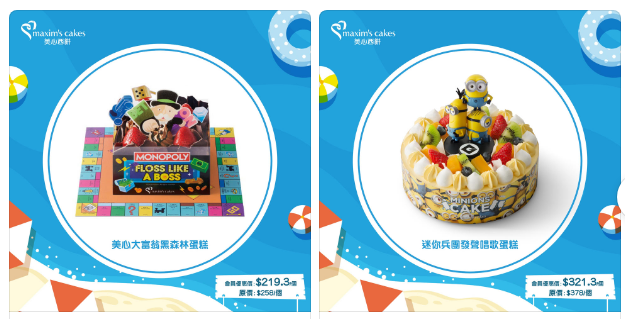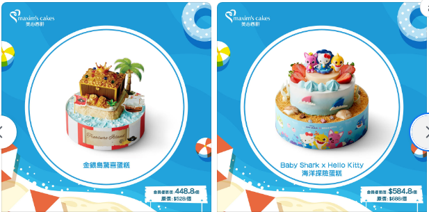 網上訂購有多款特別造型蛋糕,款式多,等你可以同親朋好友一齊過一個透心涼嘅周末!成為美心App會員訂購原價$228或以上蛋糕即享85折,訂購原價$228以下嘅蛋糕都可享有9折!仲唔快啲去