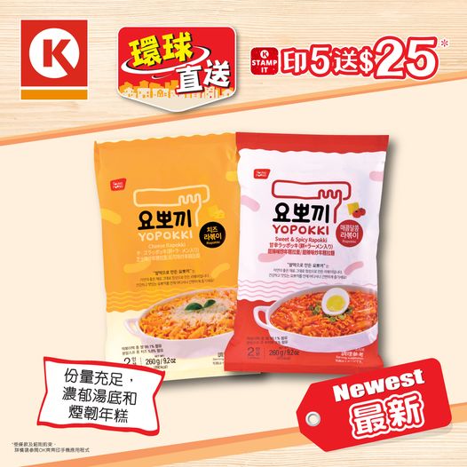 OK便利店【YOP年糕拉麵-芝士/甜辣260克裝】