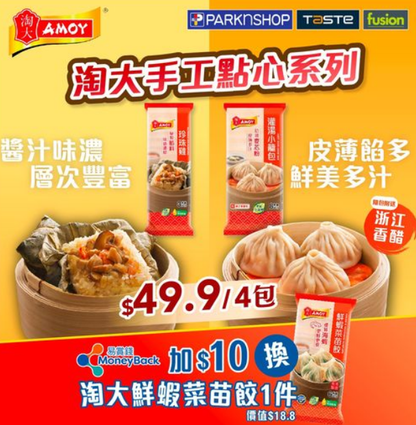 。依家去百佳超級市場,買任何4包淘大點心,只需要$49.9。易賞錢會員仲可以加$10換淘大鮮蝦菜苗餃 (價值$18.8)。立即把握機會,囤定貨,做一個「點心自主」嘅識歎之人啦