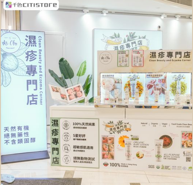 【Ms. Chu 進駐荃灣店】Ms.Chu純天然有機護膚進駐荃灣店,品牌推廣Clean Beauty純淨護膚理念,其純天然、有機、純素護膚產品有助紓緩嬰兒及成人濕疹及敏感肌等問題。
