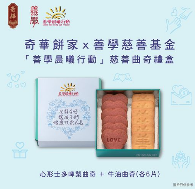 奇華推出慈善曲奇禮盒,每售出1盒 捐贈$10予善學慈善基金.