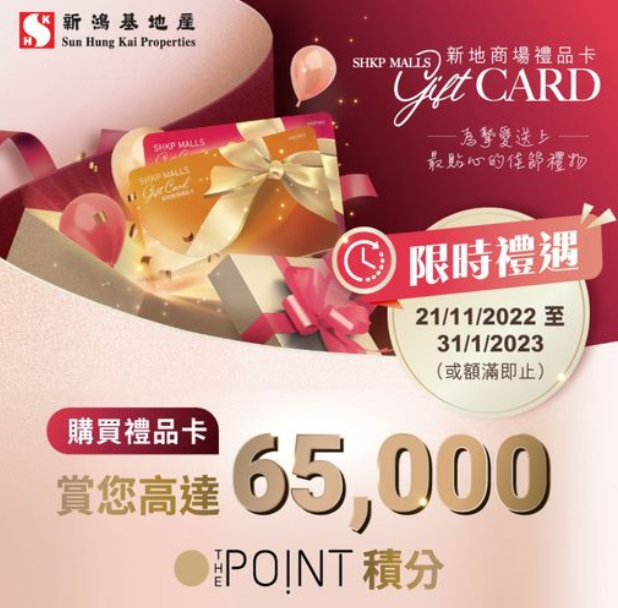 新地商場禮品卡限時節日禮遇買禮品卡兼賺The Point積分