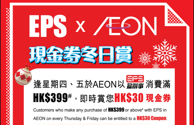 AEON Stores EPS現金券冬日賞推廣日期:2022年12月1日至12月16日https://www.aeonstores.com.hk/promotion/download?id=2258&q[id_eq]=2258&f=file_chk
