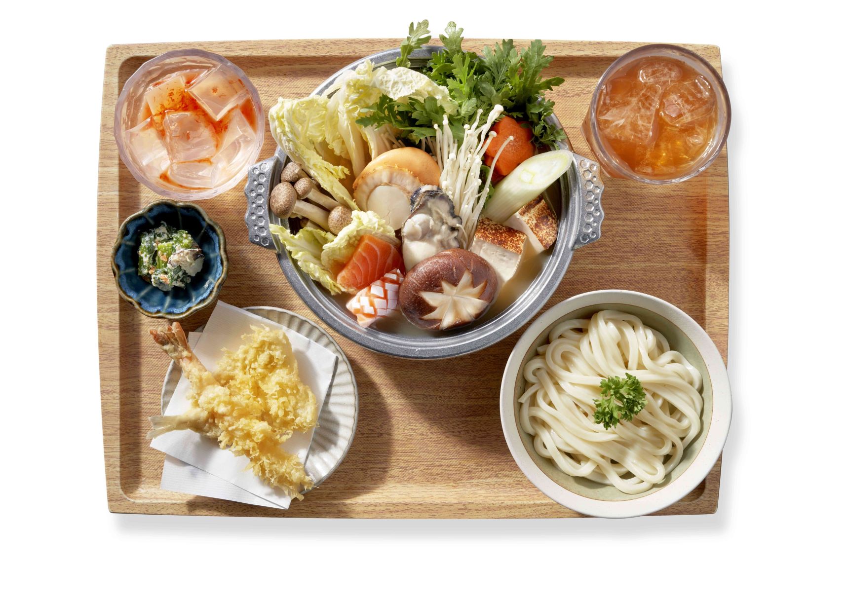 「石狩鍋」是日本北海道地區的傳統鍋料理,其中材料以海鮮為主,是最具代表性的日式鍋物料理之一。「豚丼のぶたはげBUTAHAGE」新推出一人前鍋物料理─「海鮮石狩鍋定食」,可自選食事,包括白飯或烏冬;而飲品方面可自選飲品,包括果茶、伊右衛門抹茶入煎茶等可供選擇。定食包括主食、天婦羅小食、前菜、甜品。天婦羅小食選用海老及沙錐魚,香脆可口,若意猶未盡,「豚丼のぶたはげBUTAHAGE」今年更提供追加配料餐目,例如北海道產帆立貝、廣島產牡蠣和厚切三文魚腩供追加,自選火鍋更貼合個人口味,時令高級食材將滋味進一步昇華!