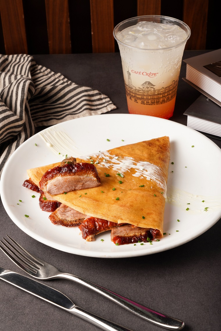 踏入初春,加拿大過江龍的法式可麗餅專門店Café Crêpe精心準備了多款獨特新品,為大家喚醒味蕾!首推破天荒聯乘鏞記酒家的期間限定「Café Crêpe X 鏞記酒家 香港燒鵝法式可麗餅」,打造融合東西風味的法式可麗餅。鏞記招牌炭燒燒鵝肉皮脆肉嫩,加上傳統京葱、焦糖洋葱提升味道層次,鵝肉及配料夾在Café Crêpe柔軟帶嚼勁而蛋香滿滿的法式可麗餅餅皮,本來已經攝魄勾魂,細嘗還能品味到特別為今次聯乘調配的創意酸甜醬汁,混和豐盈的鵝肉肉汁,滿口馥郁濃香,東西方經典對碰,火速攻陷味蕾!