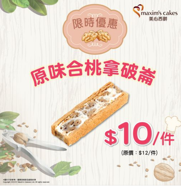 即日起至3月1日,層層酥脆、啖啖都咁crunchy嘅 #原味合桃拿破崙 只係$10,即刻嚟美心西餅門市即買即嘆啦!