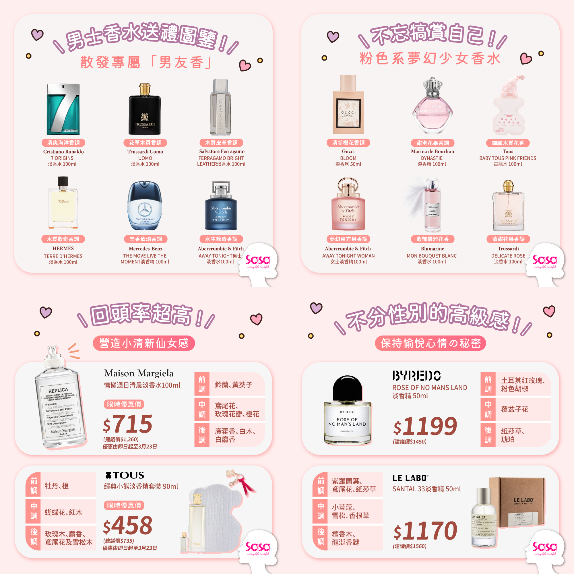 ,不妨參考莎莎推介嘅以下香水,透過香氣打造甜美、清新、溫暖氣質,無論出街拍拖時自用,或者送畀另一半