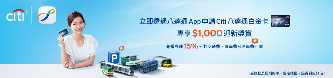 全新優惠!透過八達通App申請Citi八達通白金卡 專享$1,000迎新獎賞!