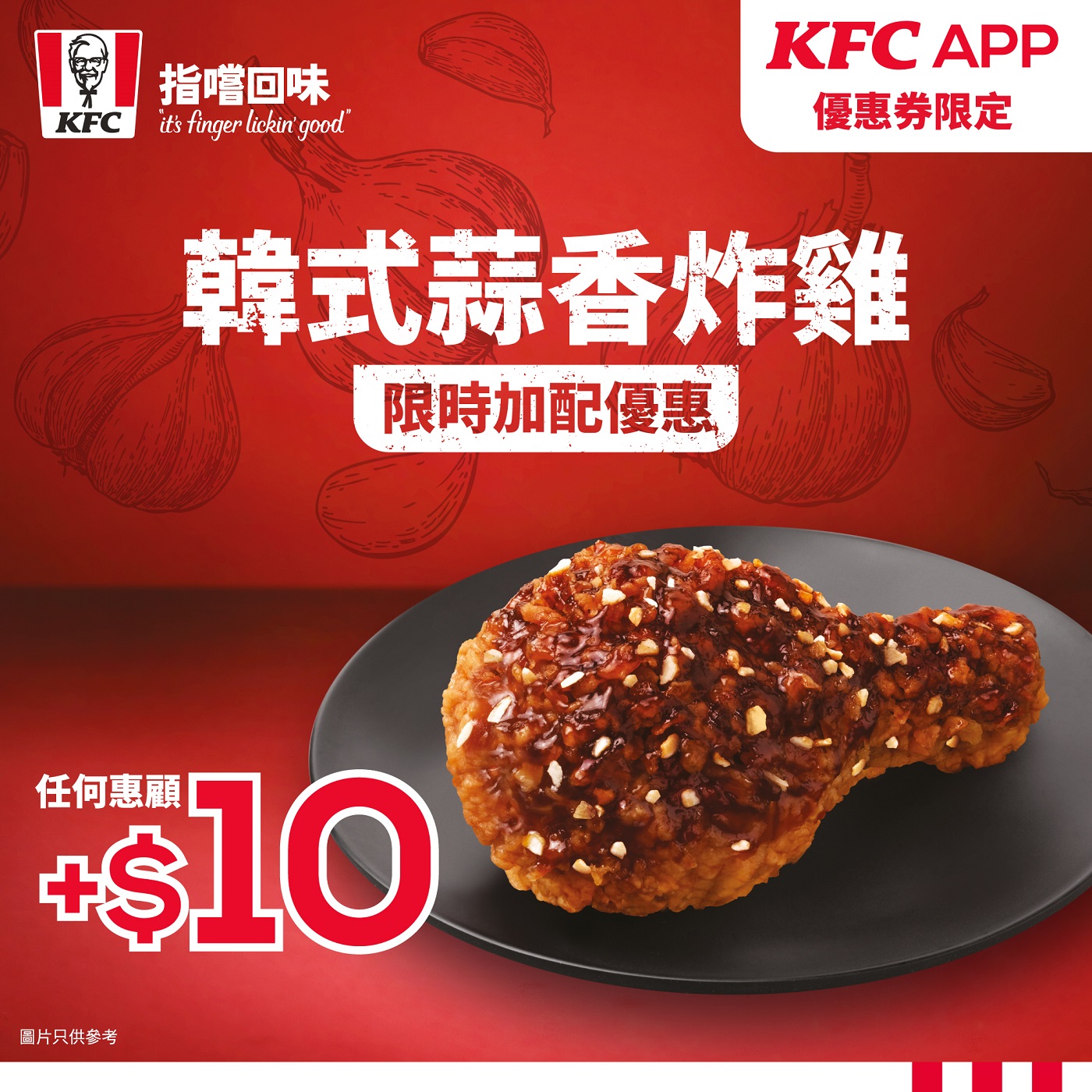 KFC APP優惠券以$10加配 #韓式蒜香炸雞