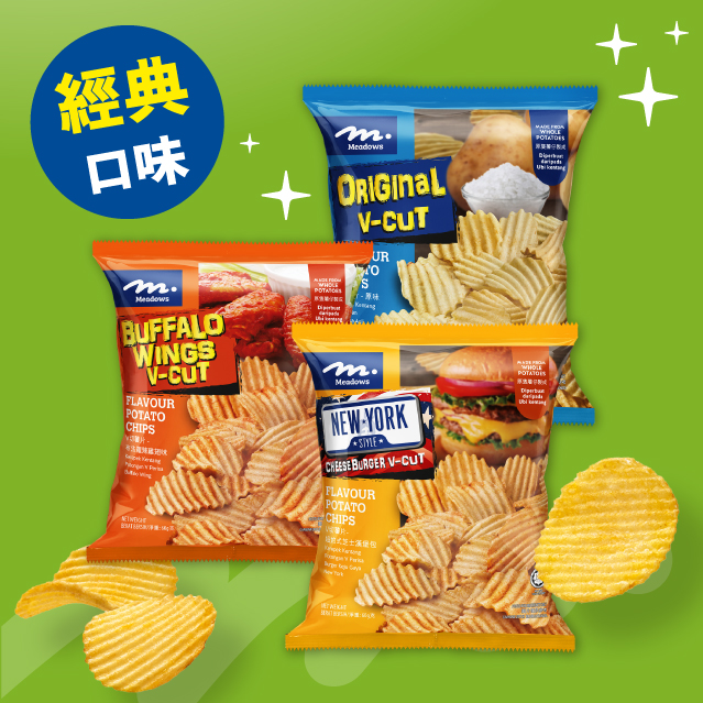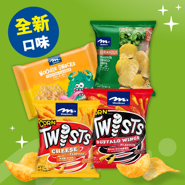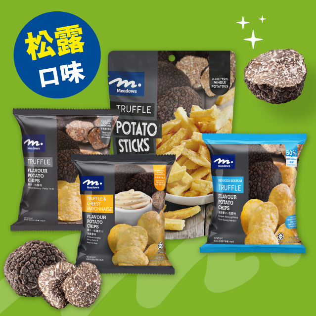 ~Meadows零食有超過30款口味,無論係薯條、薯片,定蝦片同粟米脆片都有唔同口味揀,最受大家歡迎嘅黑松露口味有7款,款款夠香脆又夠滋味,至啱一班人一齊食!