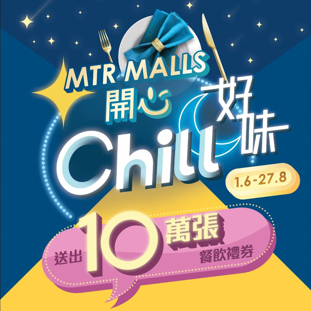 「開心Chill好味」活動詳情:bit.ly/tp_happy_dining_2023*是次活動須受「MTR 分」計劃、「港鐵商場電子禮券」以及相關活動條款及細則約束。