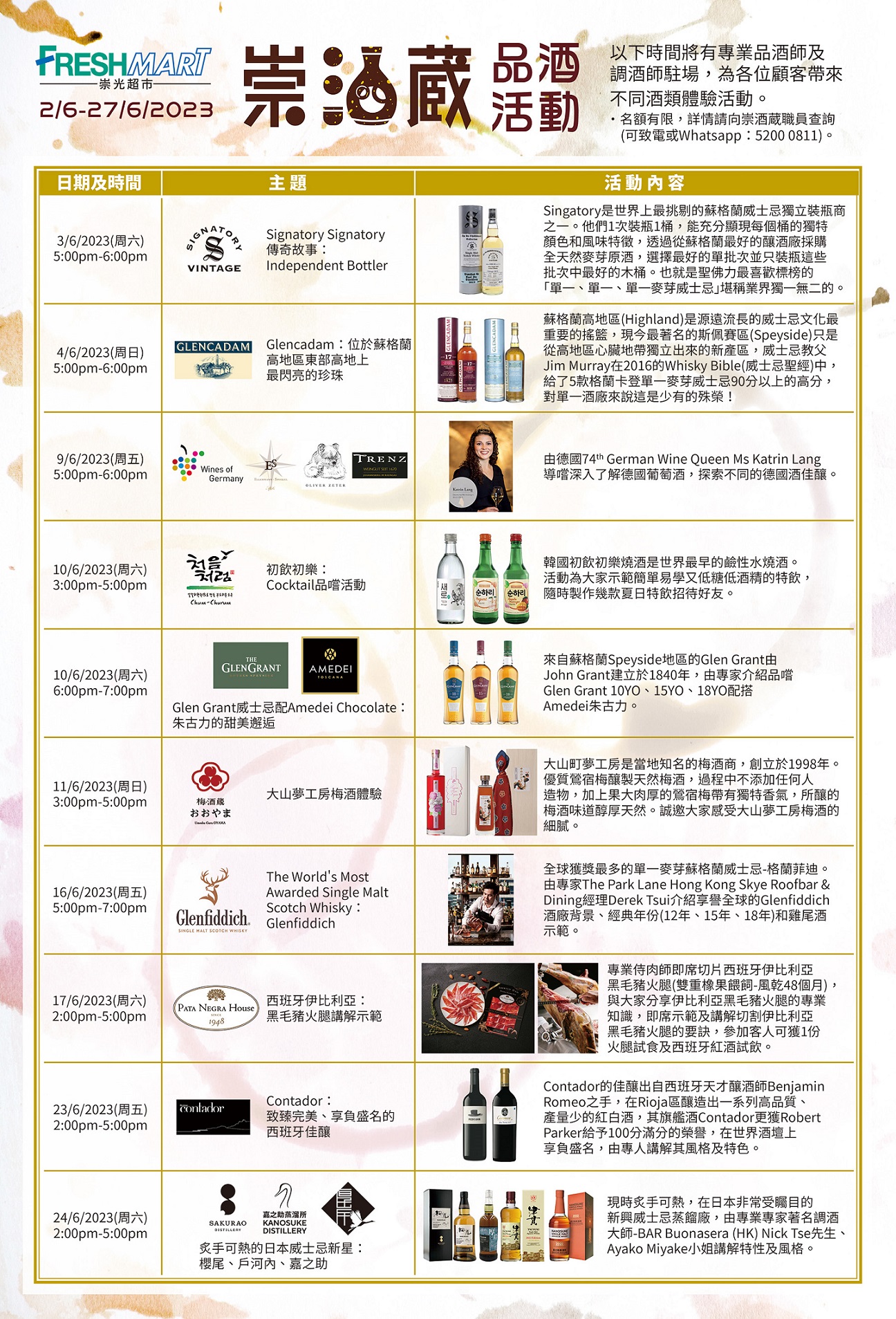 由即日起至27/6/2023期間,崇酒蔵品酒活動將於崇光銅鑼灣店B2/F崇酒蔵展開。