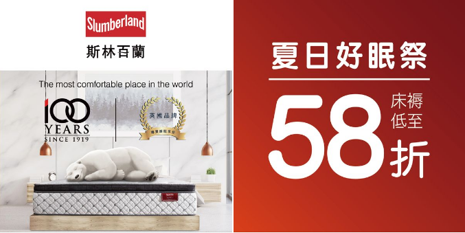 Slumberland斯林百蘭為英國著名高級床褥品牌,擁有超越100年歷史,創新及豪華床褥獲世界各地知名五星級酒店選用,床褥主打專利彈簧、專利睡眠調溫TempSmart™科技,配合獨特墊層以至圍邊設計,感受「The most comfortable place in the world」的優越睡眠享受,告別悶熱,創造每一晚舒適環境。