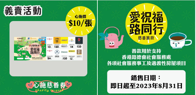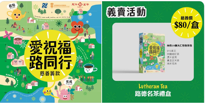 【路德會x天仁茗茶慈善義賣】即日起至15/7/2023,於指定15間天仁門市寄賣「路德名茶禮盒」作慈善籌款活動。寄賣分店如下:銅鑼灣波斯富街29號東南大廈地下A2舖灣仔軒尼詩道151號舖柴灣新翠商場1樓103-104號舖香港站HOK69號舖大角咀新九龍廣場地下027號舖旺角弼街明發大廈地下B舖 油麻地彌敦道546號旺角大樓地下A號舖九龍灣偉業街33號德福廣場二期三樓350B舖葵芳興芳路223號新都會廣場1樓182號舖荃灣眾安街68號千色匯1期2樓1號舖將軍澳唐賢街9號PopCorn商場1樓F01號舖大嶼山東涌達東路18-20號東薈城7樓702號舖馬鞍山馬鞍山廣場3樓340C舖大埔安邦路8及10號大埔超級城A區2樓 050-051號舖天水圍天華路30號天頌苑 T Town南翼地下SG22號舖
