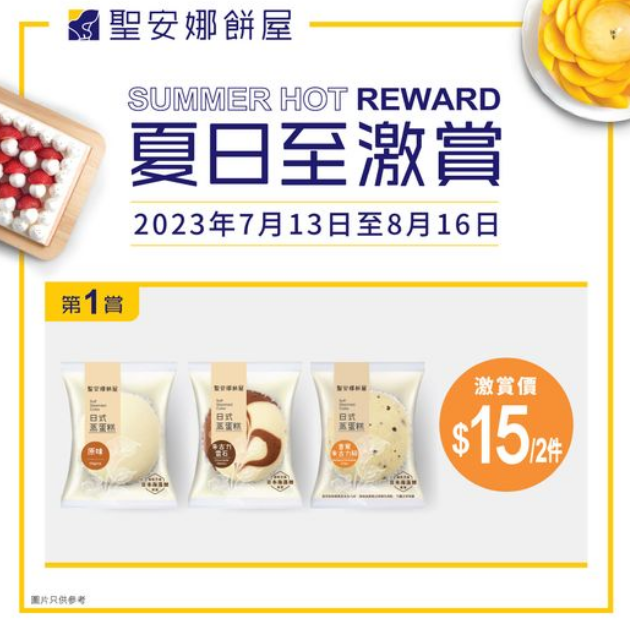 8月16日前,嚟聖安娜可以驚喜價$15購買2件日式蒸蛋糕,3款口味俾你揀!記得三款優惠都唔好錯過喇