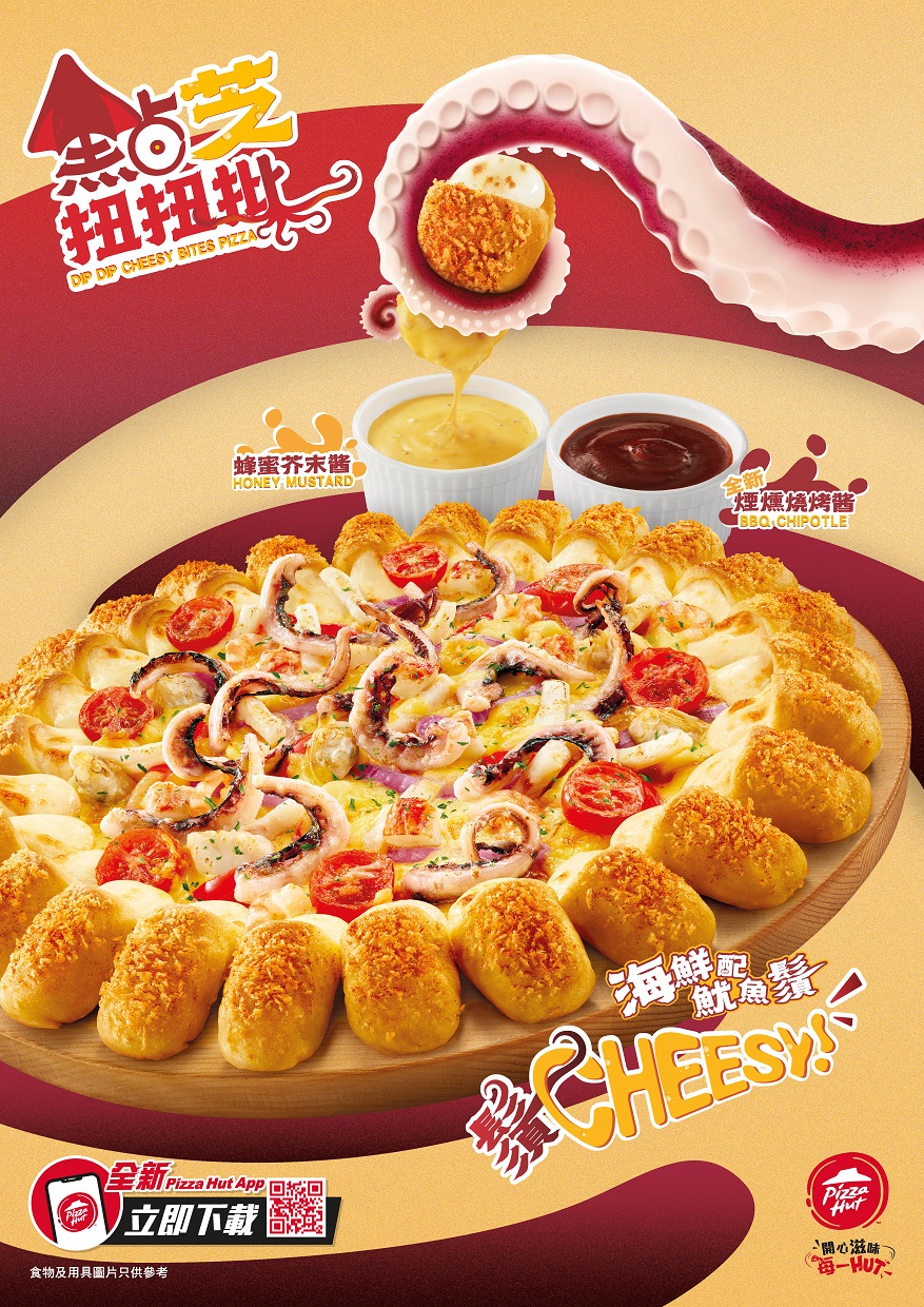 今個夏天,Pizza Hut再次扭轉芝味,「瘋鬚」地為「點芝扭扭批」扭出全新海鮮配魷魚鬚口味!香濃芝士加上鮮嫩爽口的魷魚鬚及豐富海鮮配料,再加上外脆內軟雙重口感的芝心扭扭批邊,一扭一拉,再點上令人想一Dip再Dip的蜂蜜芥末醬或全新煙燻燒烤醬,令即使是最扭擰的人也抵不住「鬚~~Cheesy」的誘惑!是次期間限定「點芝扭扭批 ─ 海鮮配魷魚鬚」單點只售$186起,一於想點、就點,立即用手機App落單,試過就「芝」有幾好玩有幾驚喜!