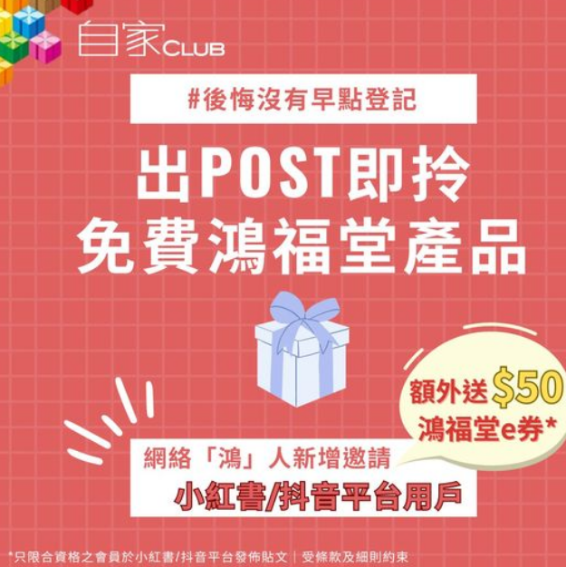 小紅書/抖音平台用戶注意🤳🏻出post額外送鴻福堂e券