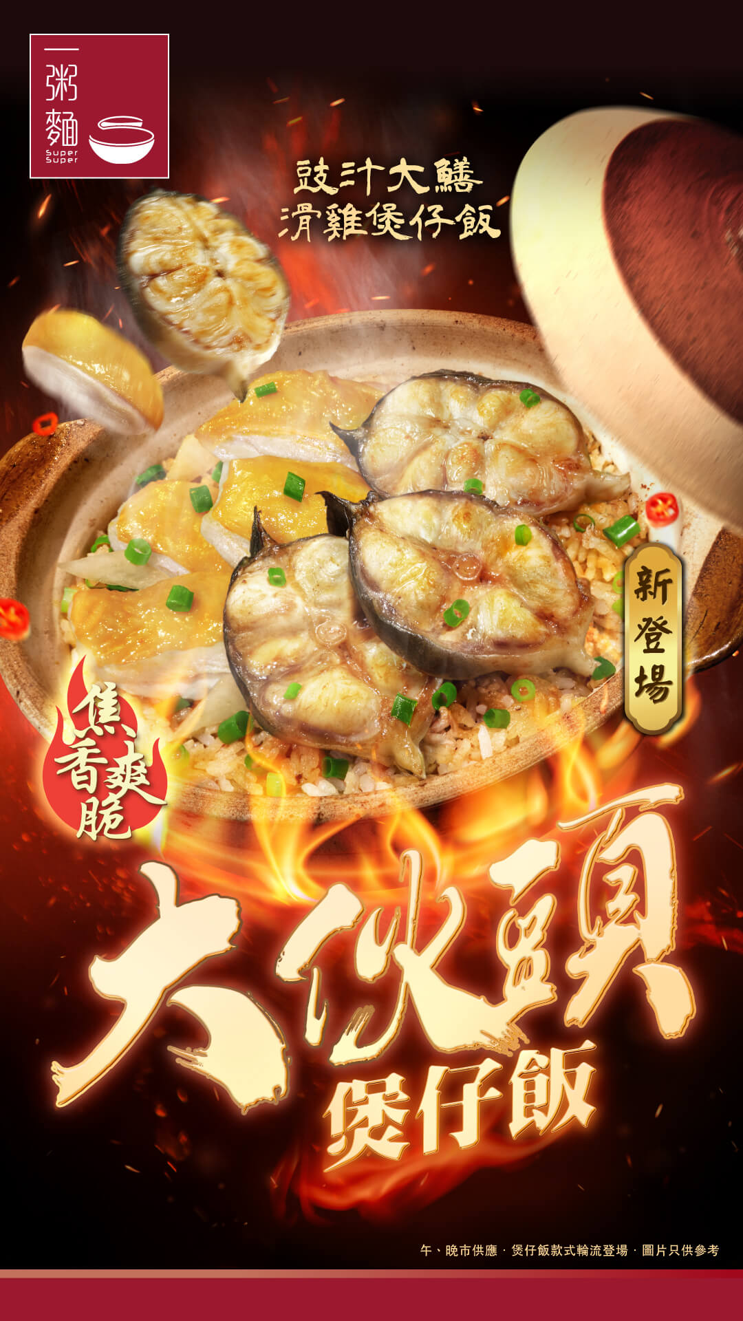 豉汁大鱔系列 是次的煲仔飯重點,不得不提以豉汁大鱔主打的新產品,包括「豉汁大鱔排骨煲仔飯」及「豉汁大鱔滑雞煲仔飯」,可謂這個秋冬不容錯過的暖笠笠滋味首選。 「豉汁大鱔排骨煲仔飯」以軟腍甜美的新鮮大鱔遇上肉味甘香的靚排骨,以濃郁惹味豉汁醃製,保證啖啖滿足。焦香爽脆的黃金飯焦與大鱔鮮味更是天作之合,令人吃不停口。 「豉汁大鱔滑雞煲仔飯」同樣令人愛不釋手,精選上盛滑雞,配以豉汁醃製令肉質倍加滑嫩。大鱔滑雞與生米於砂鍋燜煮的過程更會逼出魚肉和雞肉本身的鮮甜醬汁,自然融入米飯之中,香氣撲鼻之餘更令滋味昇華,再淋上秘製醬汁,炮製出美味與溫暖兼備的秋冬滋味。 價錢 堂食價:HK$65起 外賣價(連煲):HK$71起 供應日期: 豉汁大鱔排骨煲仔飯 - 即日起至11月13日 豉汁大鱔滑雞煲仔飯 - 2023年11月14日至12月11日 | |||||